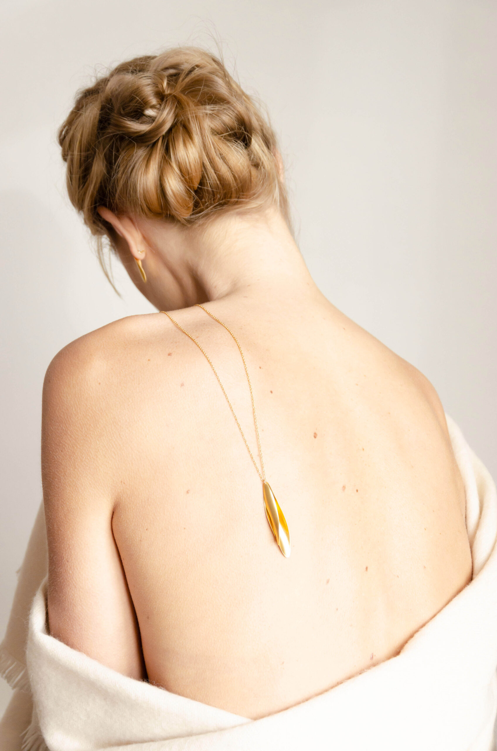 Our Swirling Wind necklace is available in a Dutch recycled sterling silver version and an 18K
